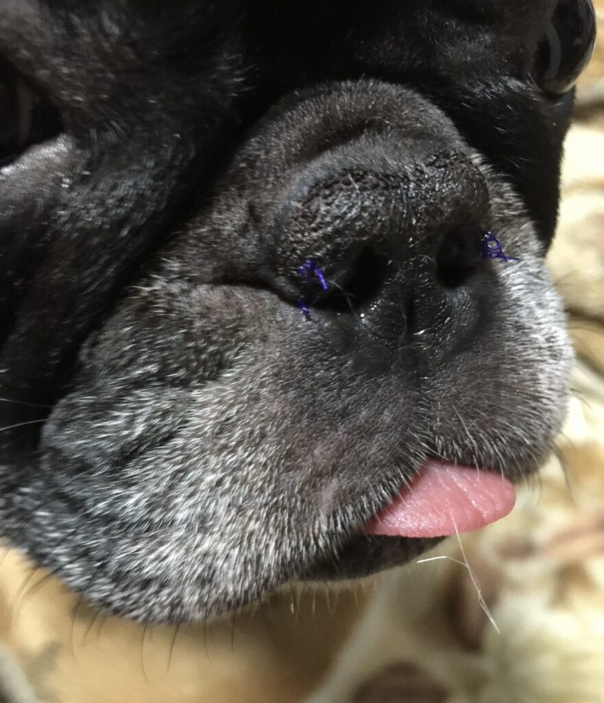 子宮の手術をする ついで? にと フレンチちゃん特有のお鼻の手術も進められまして どうせならと一緒に鼻も手術しました わかりづらいですが お鼻に 手術の糸が両鼻に( *´艸`) プ~クスクス これで鼻通りもスッキリですね -