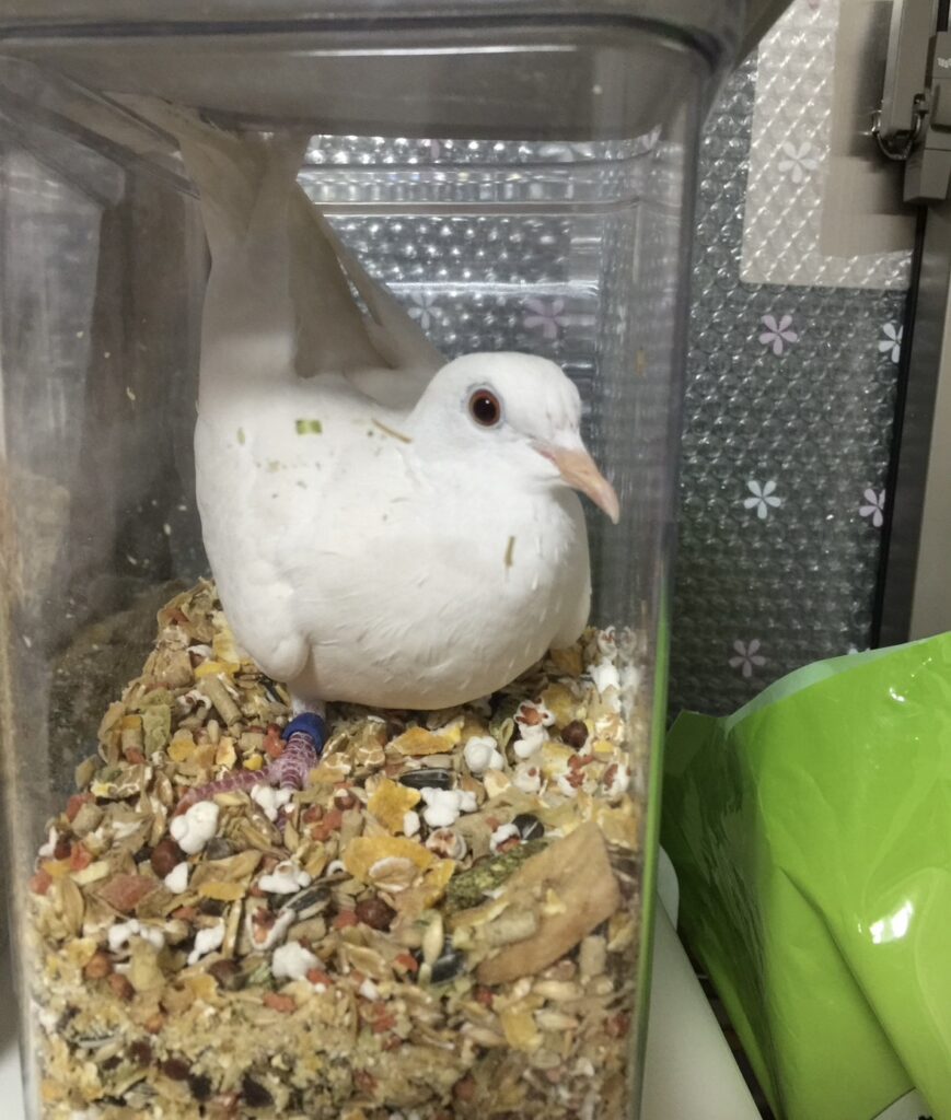 泥棒した結果 ( `ー´)ノ 懲らしめるために蓋を占めてやりましたが、どこ吹く風??? 反省しないな。。。 ちなみに、それはリスさんのごはんですよ!!!! -