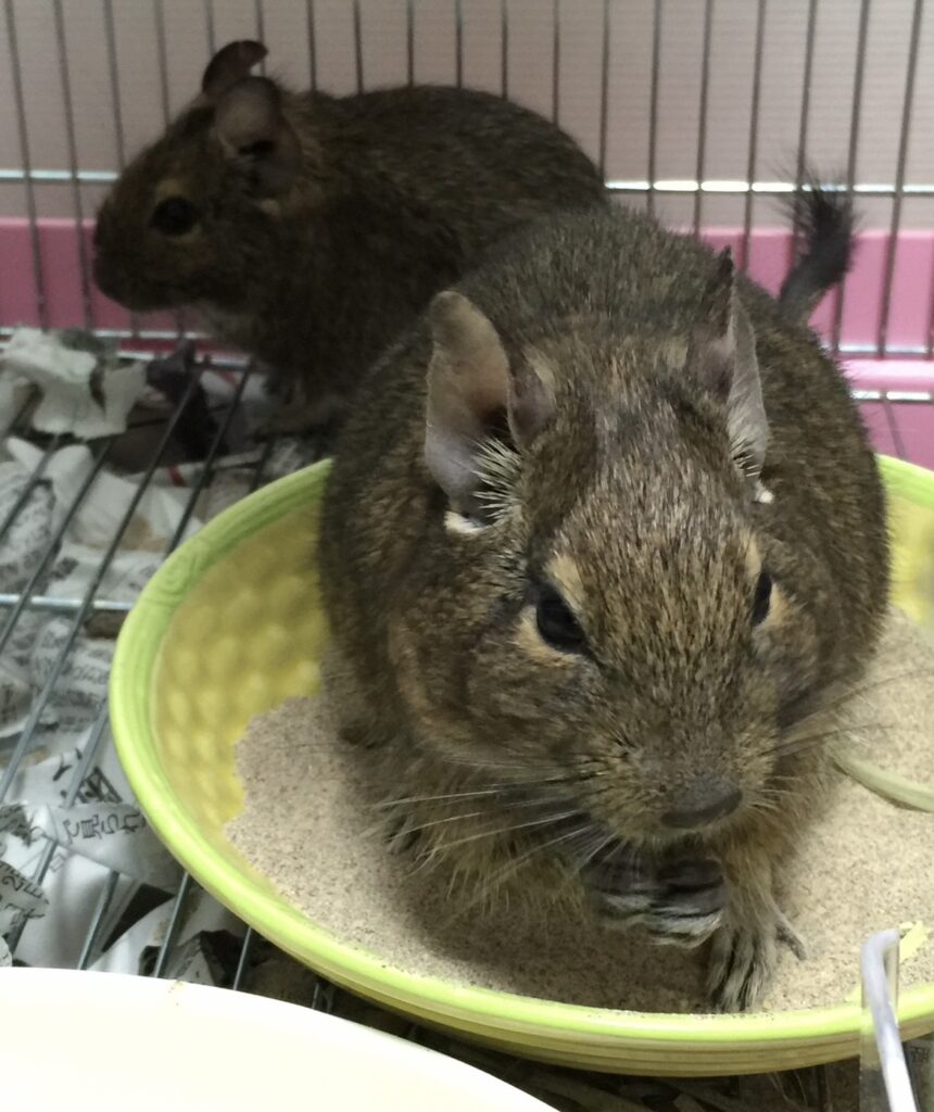 基本的にお迎えされない子がきになってしまい、この子たちもホームセンター内の ペットショップに居た子、いつまでも居るので、またうちに来てもらいました 初めてのデグーちゃんでした。そのため特徴などもお伺いしたうえでカゴも ある程度は対応したカゴ... -
